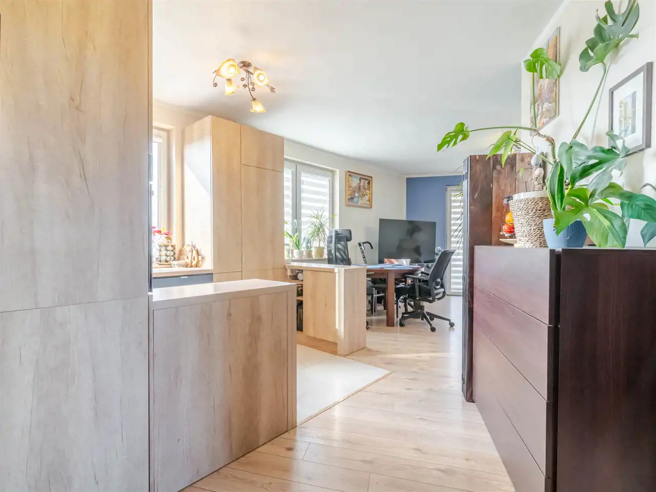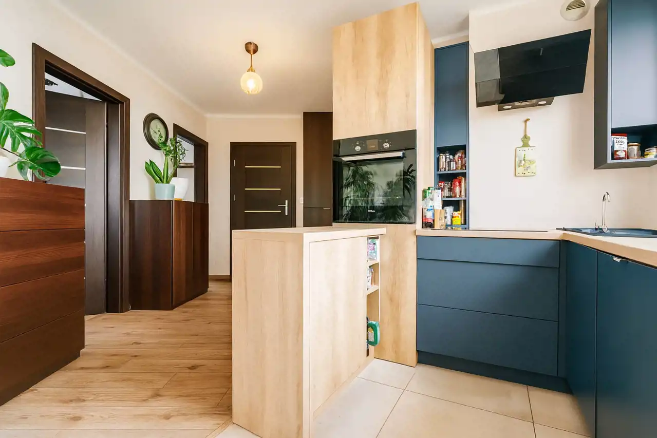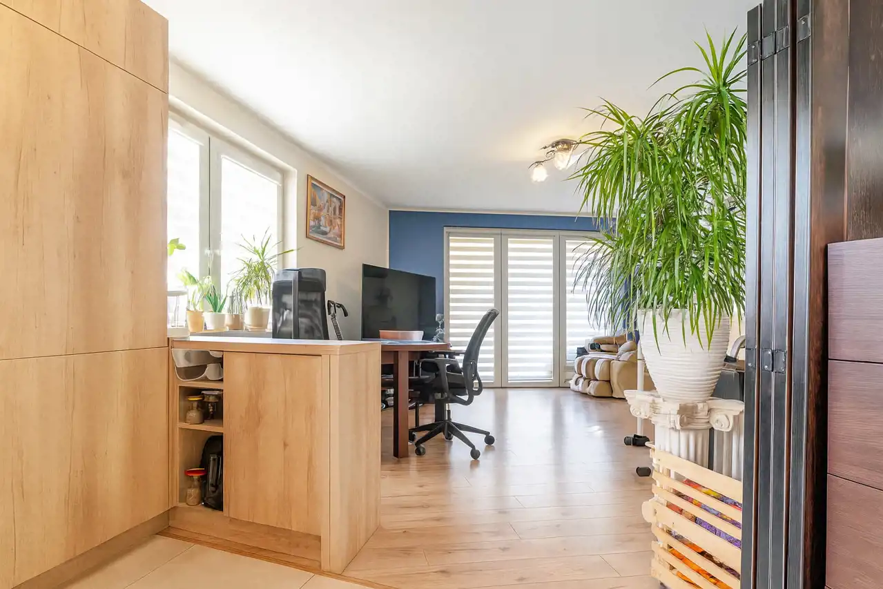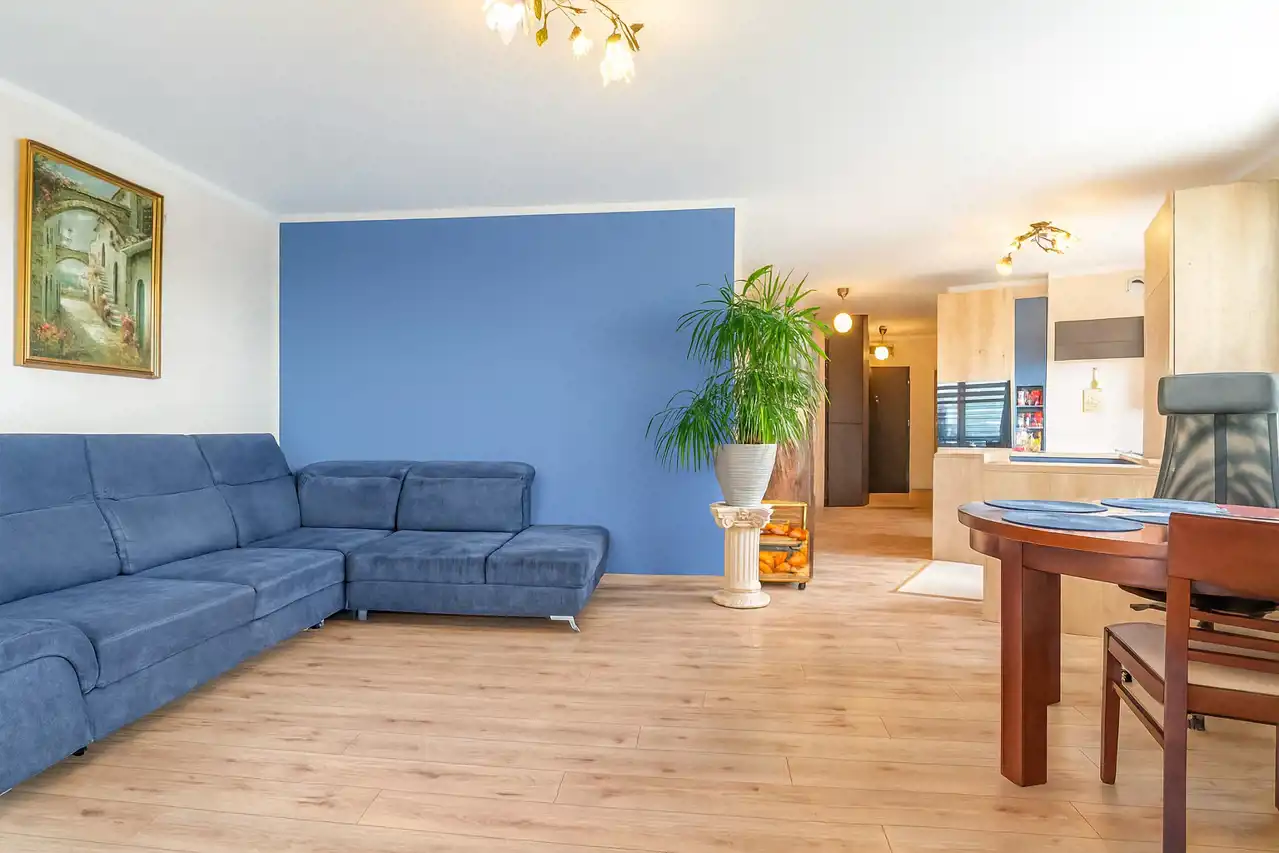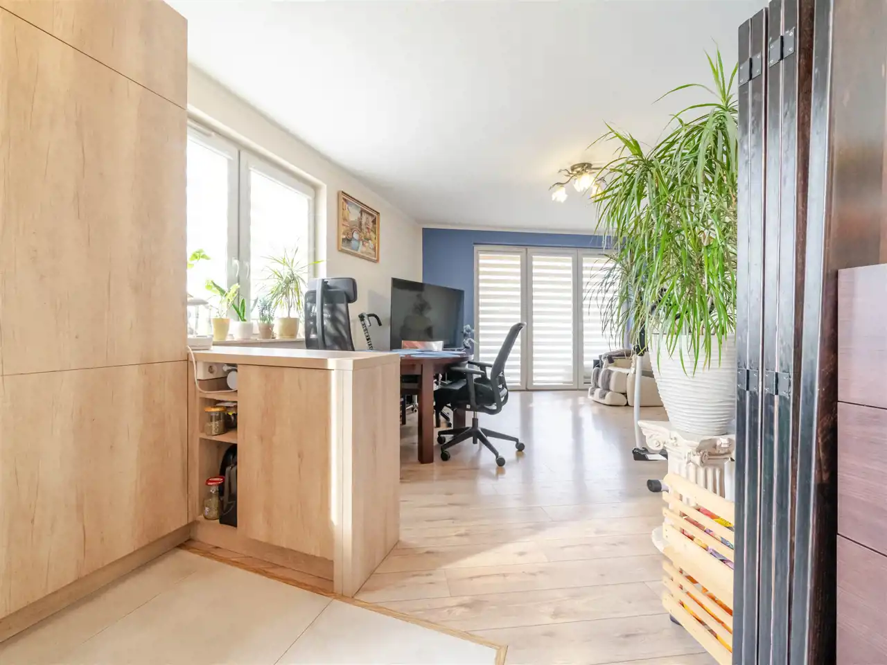 - Salonu z aneksem kuchennym i wyjściem na balkon