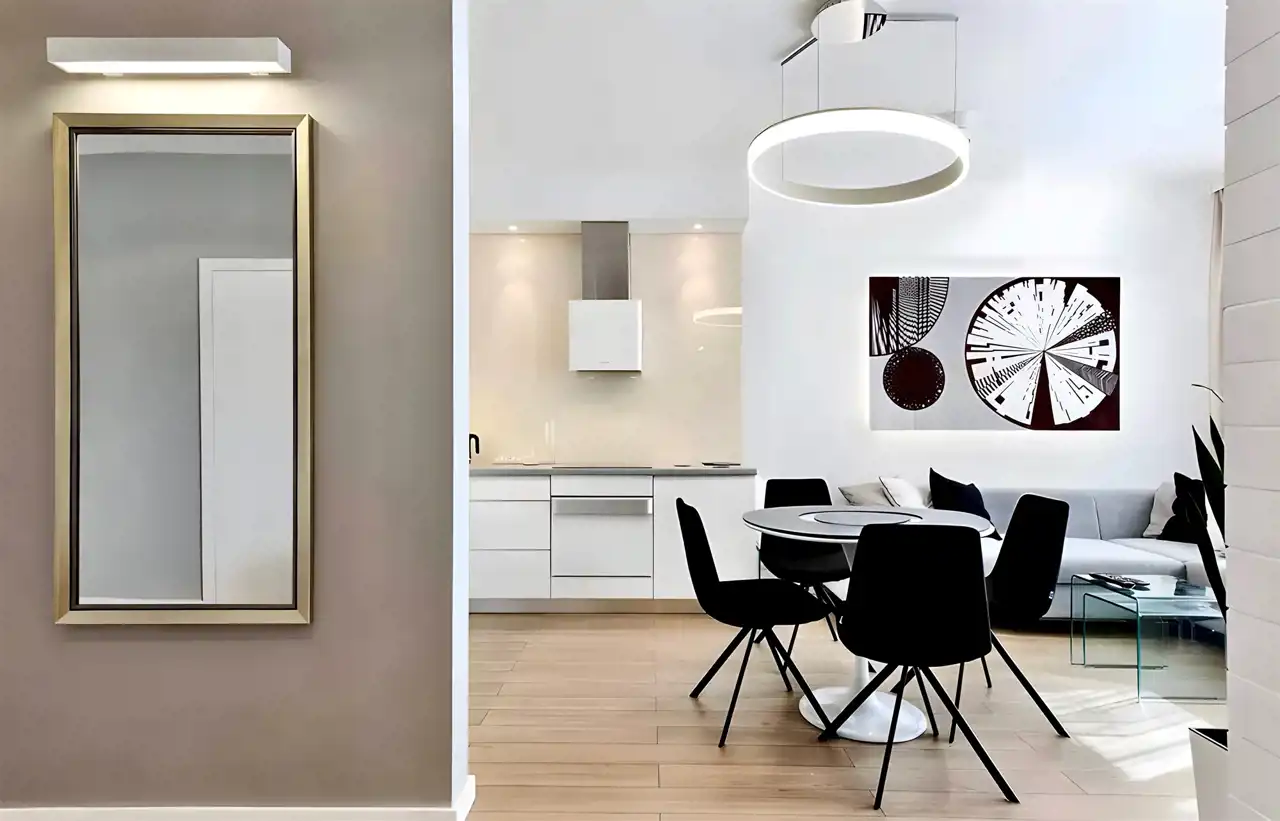 Luksusowy dwupokojowy apartament o powierzchni prawie 60 m2 znajduje się na I piętrze nowoczesnego apartamentowca z 2010r. W budynku jest winda.