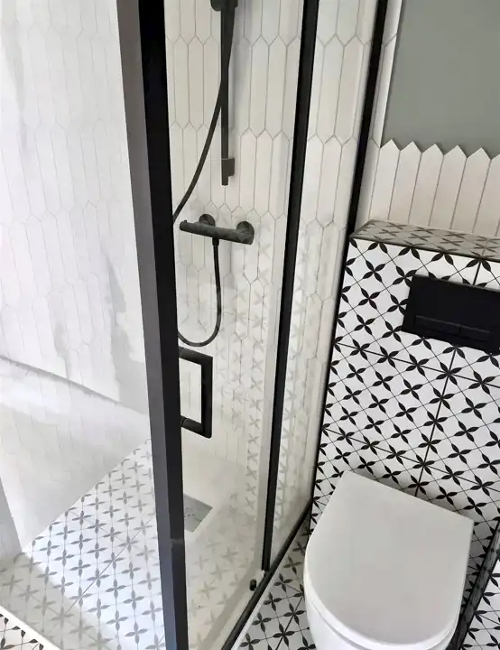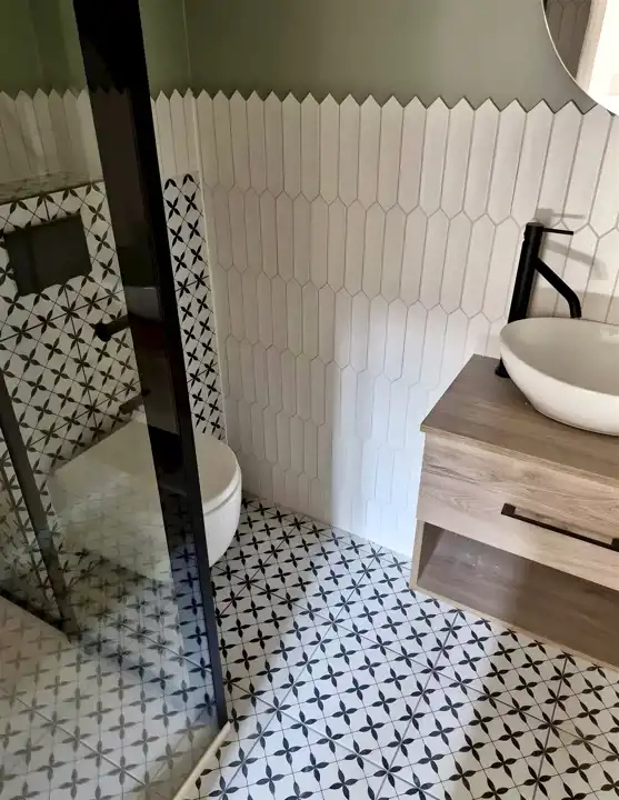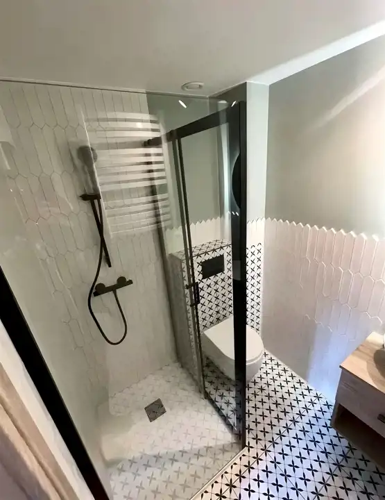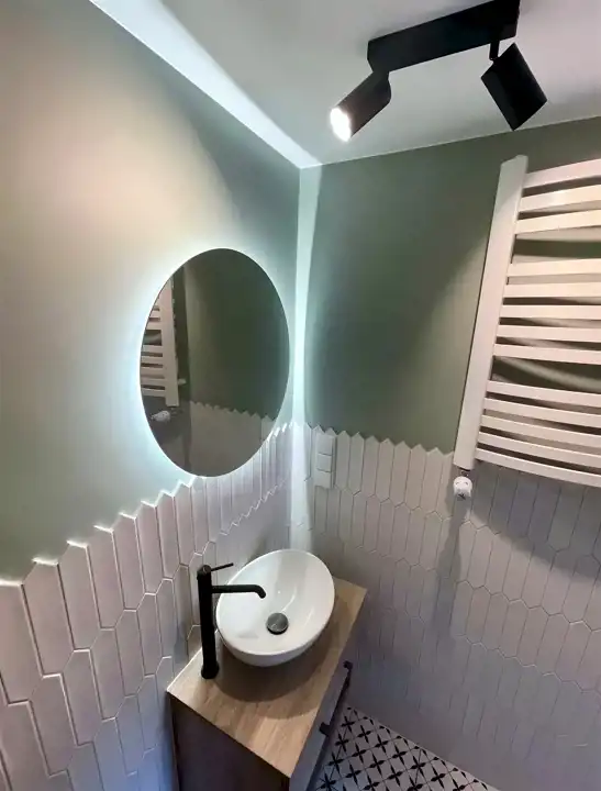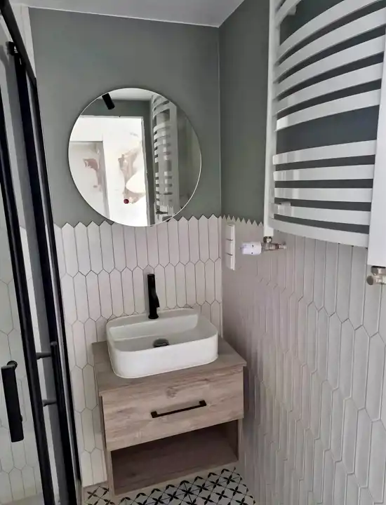 Prace związane z montażem klimatyzacji zostały zakończone. Łazienki zostały wykończone .
