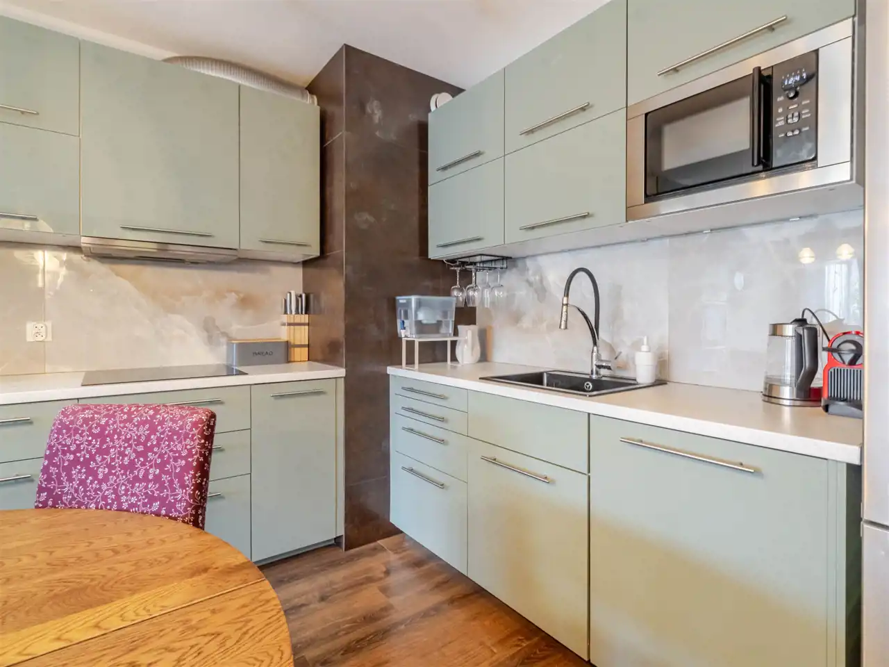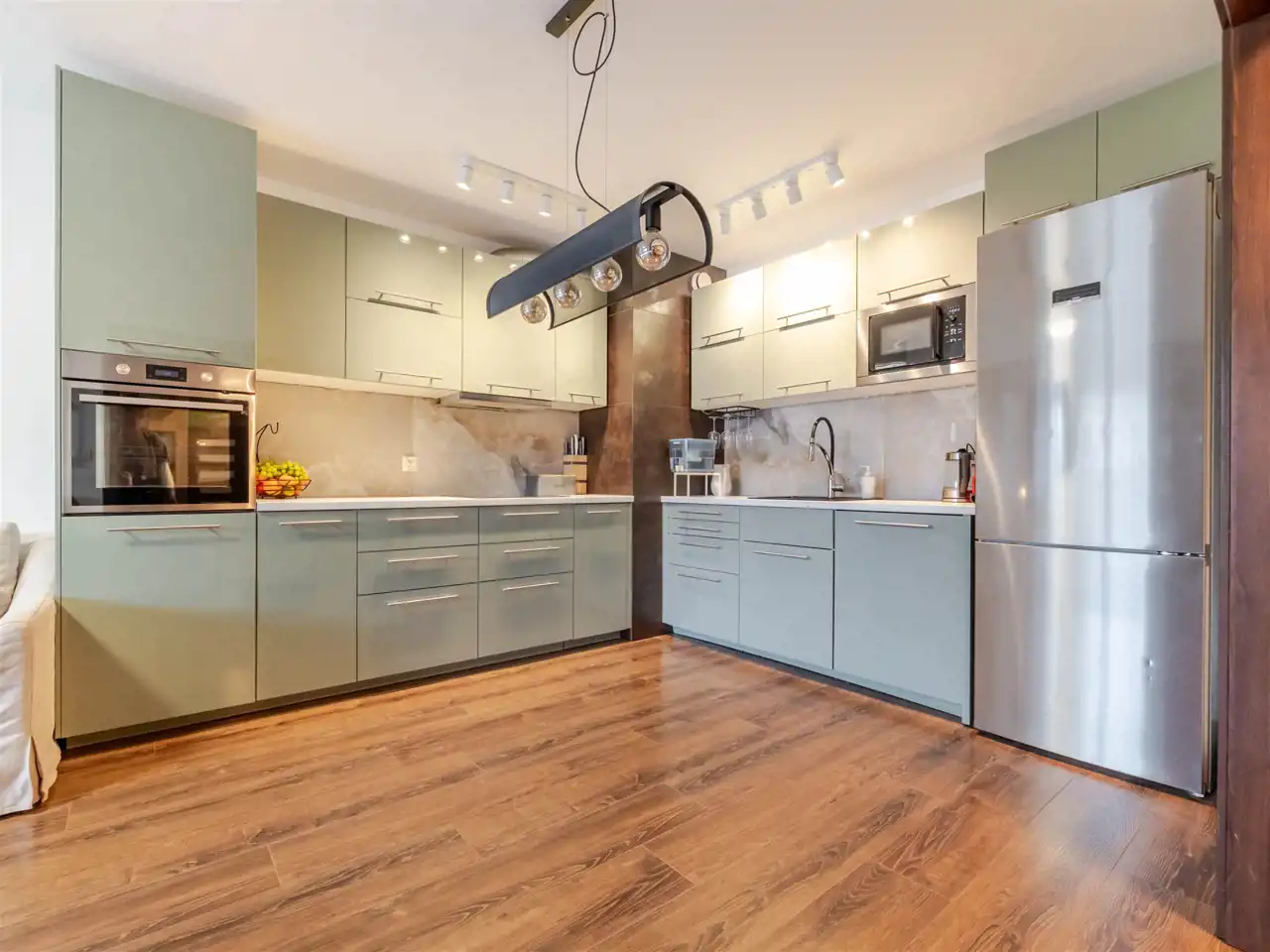 Mieszkanie wyróżnia się ponadstandardową powierzchnią, a także wygodnym układem pomieszczeń. Szerokie korytarze oraz brak barier architektonicznych gwarantuje komfort użytkowania nawet dla kilkuosobowej i wielopokoleniowej rodziny.