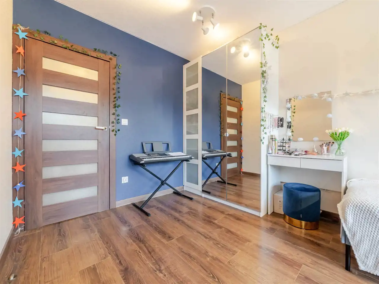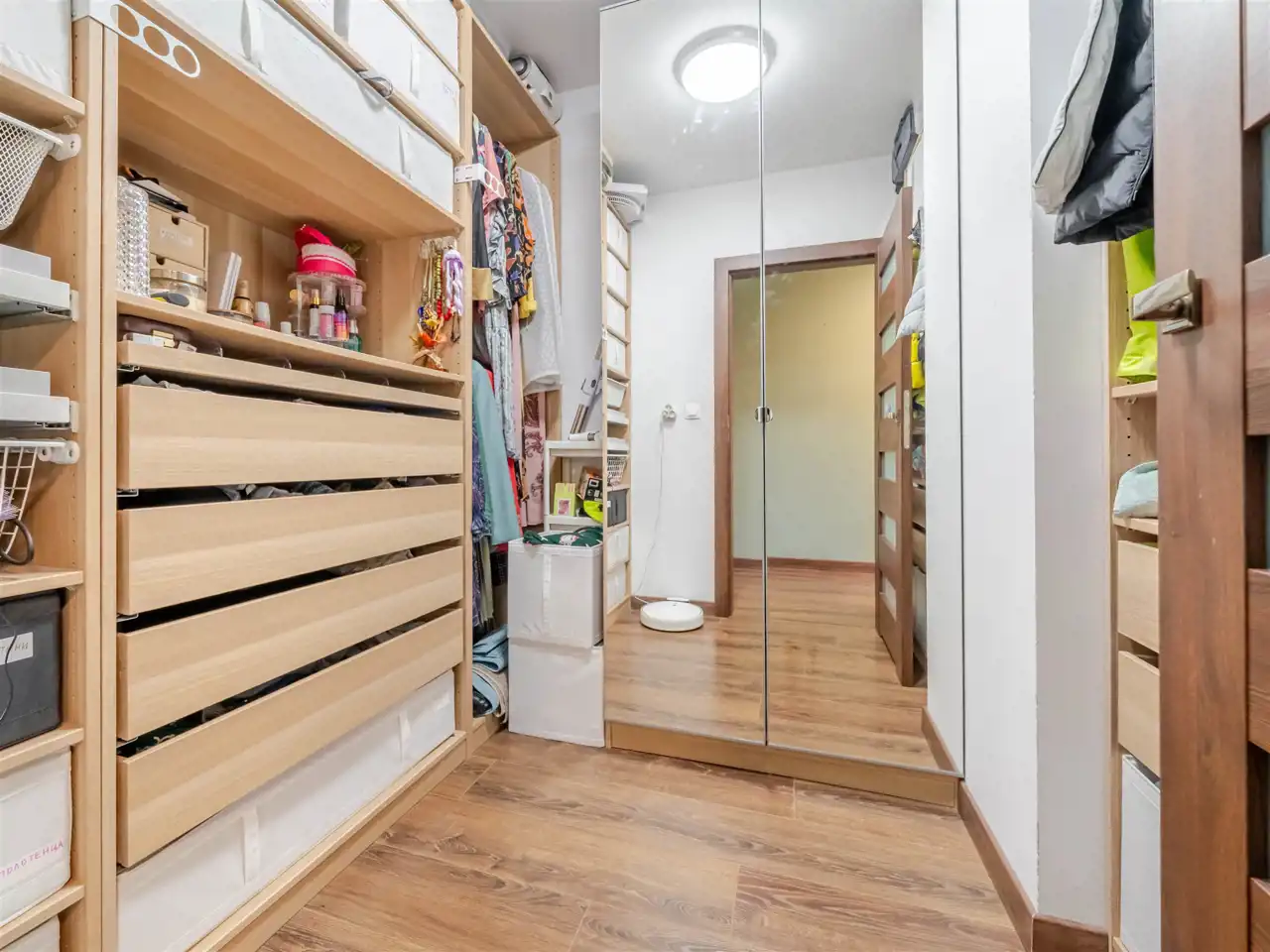 - Garderoba o pow. ~5 m2 z meblami do przechowywania