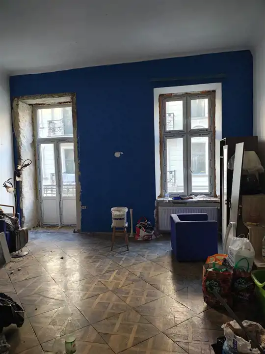 Mniejsze mieszkanie jest w stanie do wykończenia tzn. uzupełnienie parkietu, odmalowanie.
