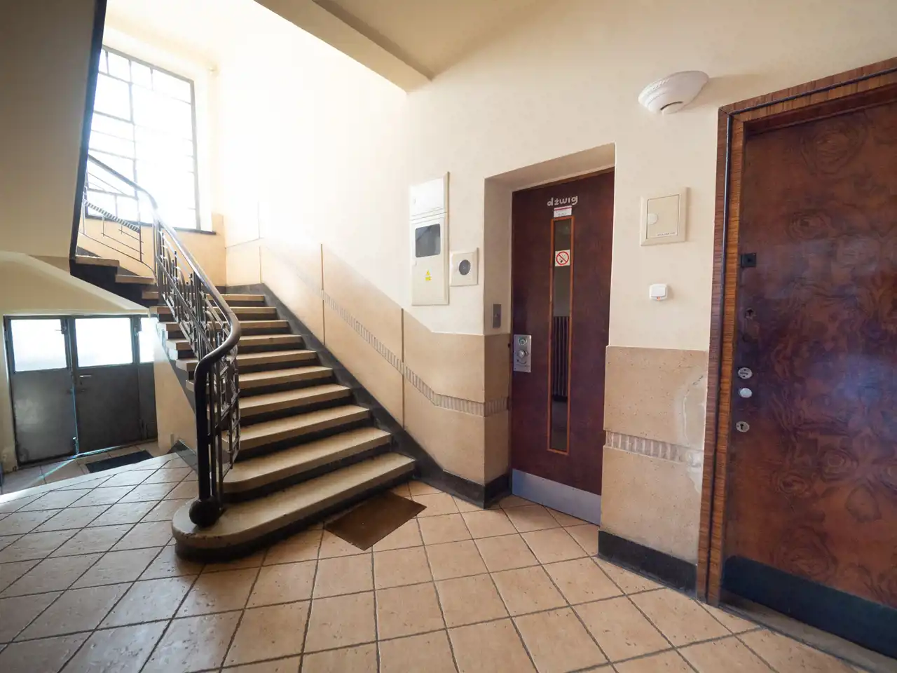It is an elegant tenement house from the interwar period (1938) in the art deco style. Those who deserve recognition include: external doors to apartments and their frames, which are made of exotic wood - Caucasian walnut burl. Well-kept terrazzo floors. The building has an elevator and a dedicated bicycle space in the yard at the back of the building. Current monitoring. The tenement house is intimate, with only 3 apartments per floor. The basic building material is brick.