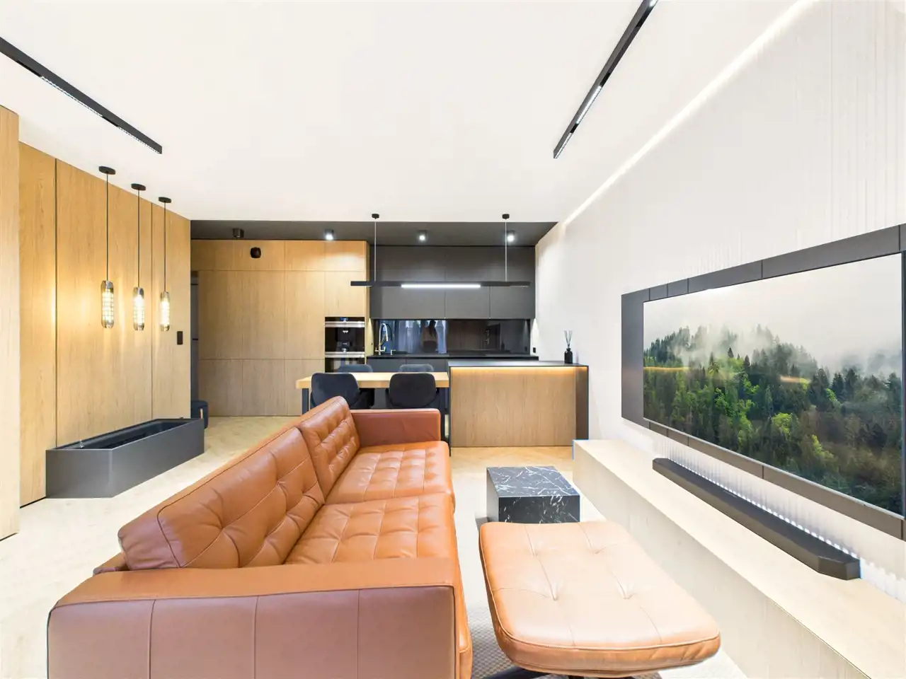 The apartment was designed by an interior architect and finished using premium materials. It is equipped with a Smart Home system, air conditioning in all rooms, and full furnishings — the property is ready to move in.