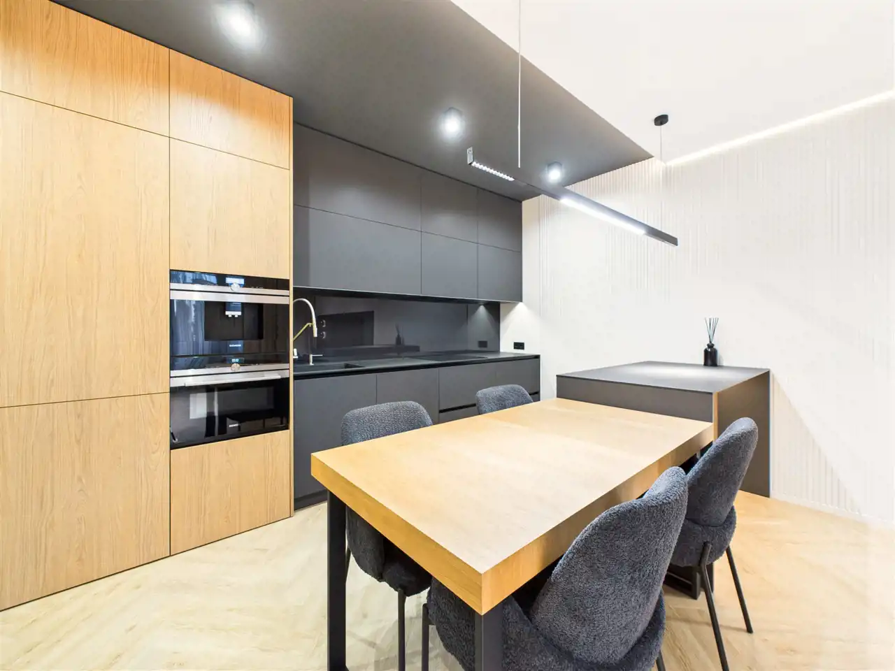 Квартира спроєктована дизайнером інтер’єру та оздоблена з використанням матеріалів преміумкласу. Оснащення включає систему Smart Home, кондиціонування у всіх приміщеннях та повне меблювання — квартира готова до проживання.
