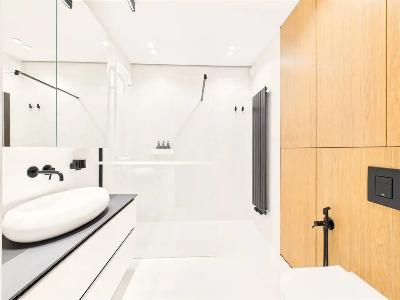 – сучасна ванна кімната з душем типу walk-in,