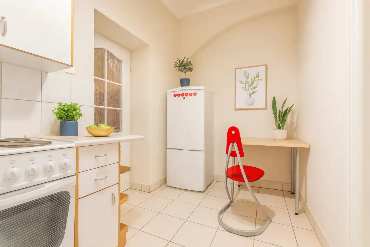 - Mieszkanie 2 - studio (pokój z oddzielną kuchnią) o powierzchni około 33 m2