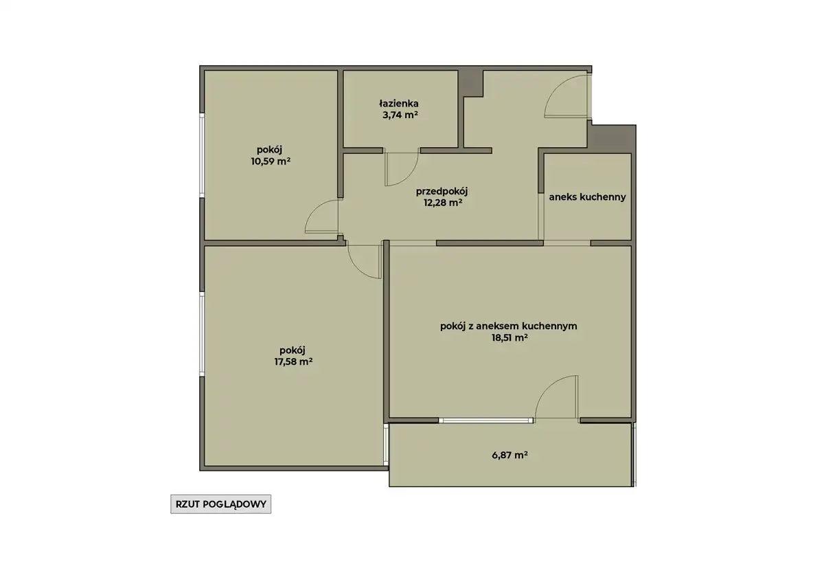 • dwie sypialnie – 17,58 m² oraz 10,59 m²