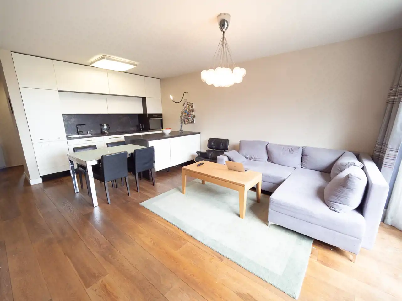 The apartment is finished with attention to the smallest detail and equipped with top-class furniture and equipment. Heating and water from the city network. The apartment includes a parking space in the underground garage and a storage room located on the same floor.