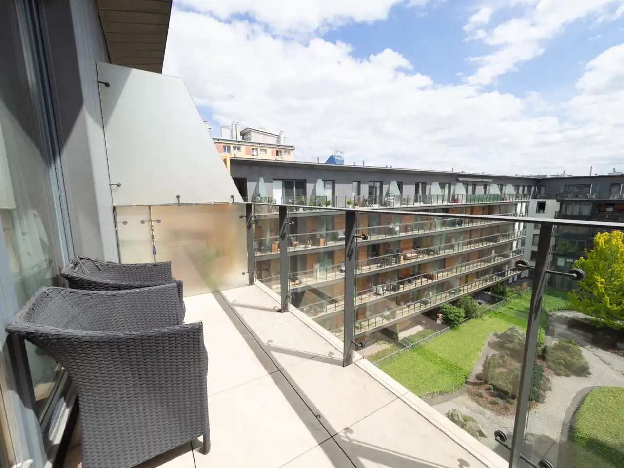 - living room with kitchenette with access to the balcony overlooking the green courtyard