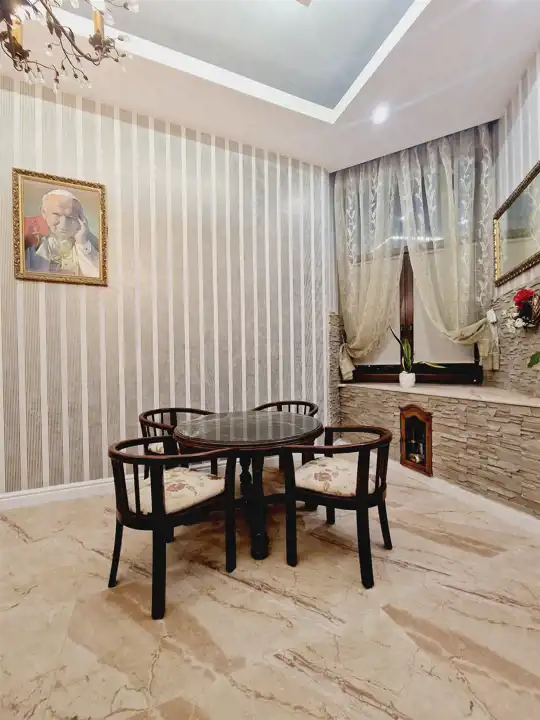 Nieruchomość z widokiem na panoramę okolicy oraz zielony plac który znajduje się za kamienicą. Komfortowy apartament położony w lewym skrzydle budynku. Na pierwszym planie znajduje się duży salon z kominkiem o wysokości ponad 3,80 metrów doświetlony w dużej części oknami plastikowymi od strony ulicy Kremerowskiej. Tuż za salonem znajduje się pokój gościnny z wyjściem na mały balkon a za ścianą salonu i gabinetu mamy przestronną główną sypialnię. Od strony zielonego placu zlokalizowana jest osobna i wodna kuchnia, łazienka z wanną oraz druga łazienka z prysznicem.