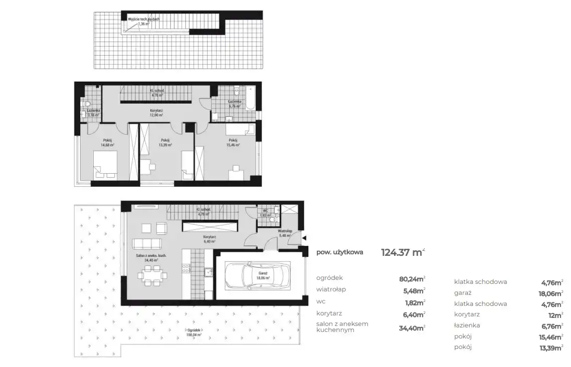 - Charakterystyka mieszkania 124.37 m2, 4 pokoje, do wykończenia
