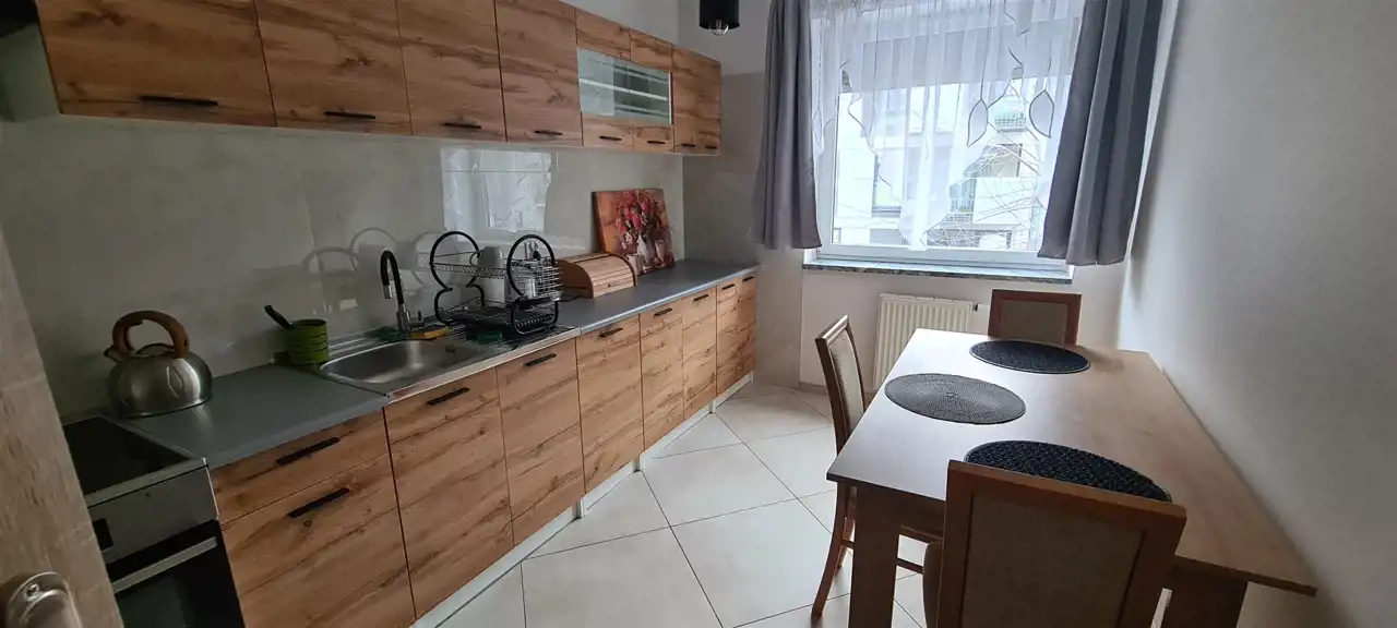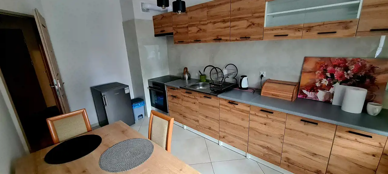 - oddzielna, jasna kuchnia z oknem, wyposażona w urządzenia AGD (lodówka, kuchenka, okap),