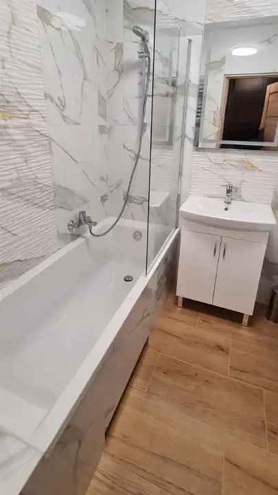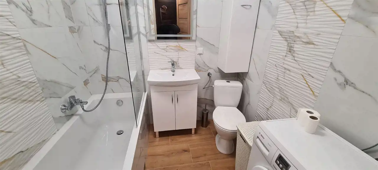 - łazienka razem z WC, wyposażona w wannę,