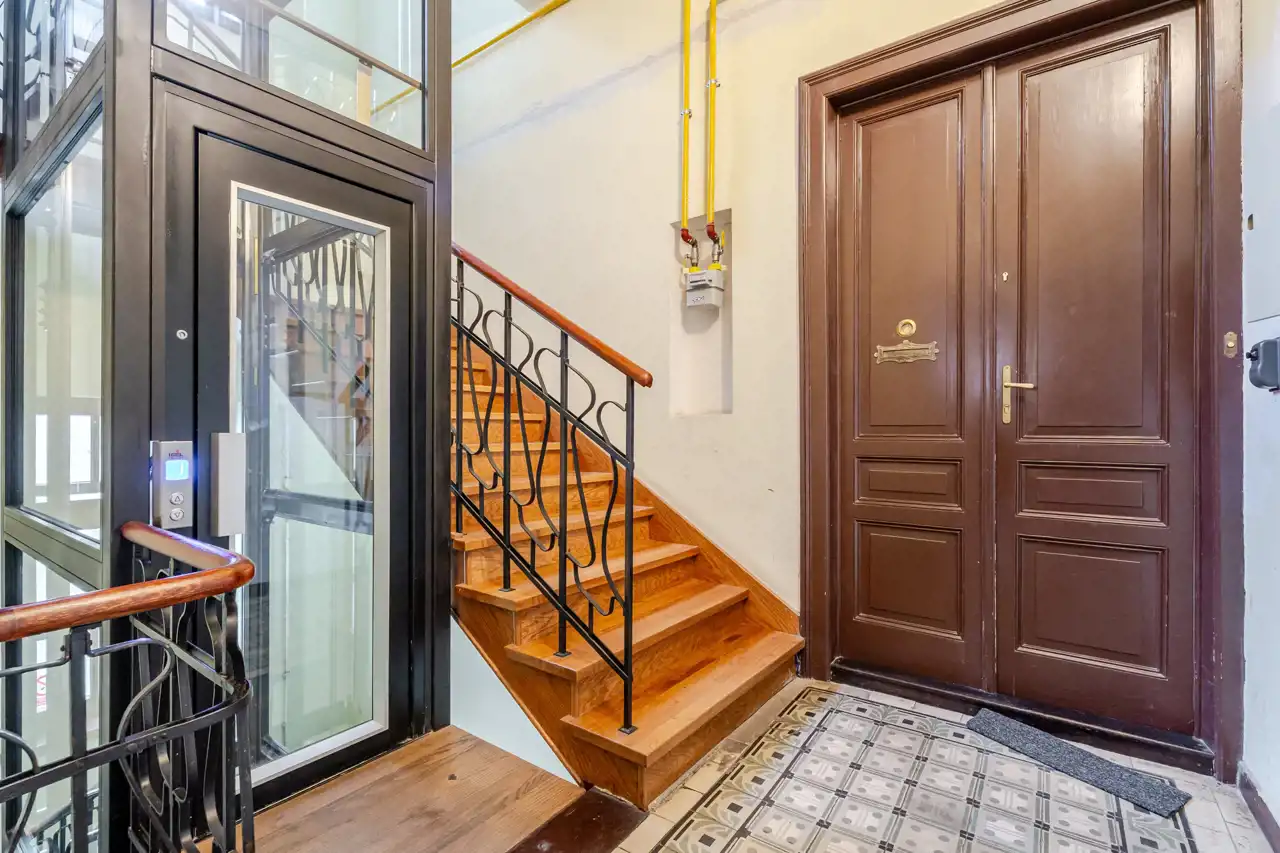 Building: fully revitalized tenement, elegant stairwell, modern elevator