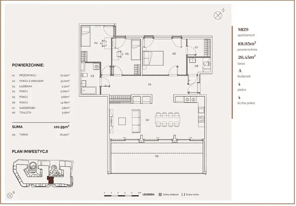 - Charakterystyka mieszkania 101.95 m2, 4 pokoje