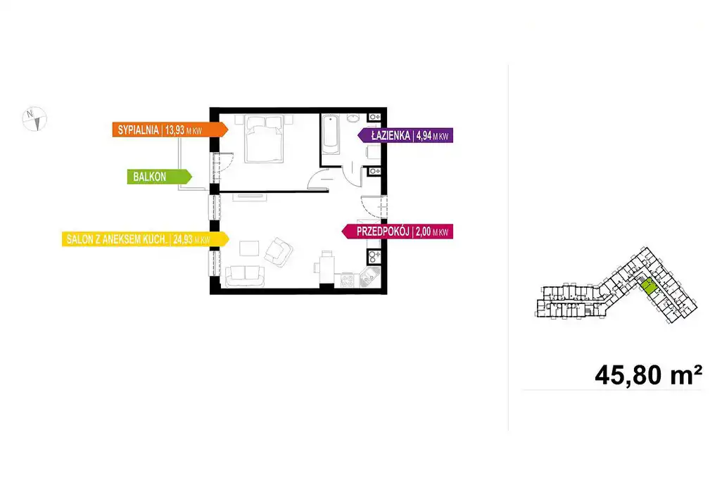 - Charakterystyka mieszkania 45.8 m2, 2 pokoje