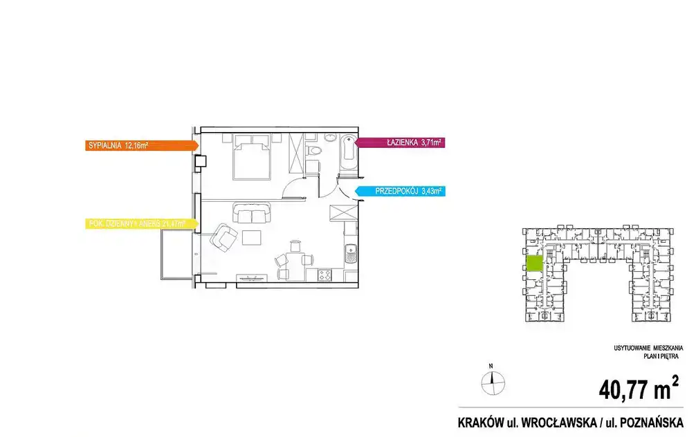 - Charakterystyka mieszkania 40.88 m2, 2 pokoje