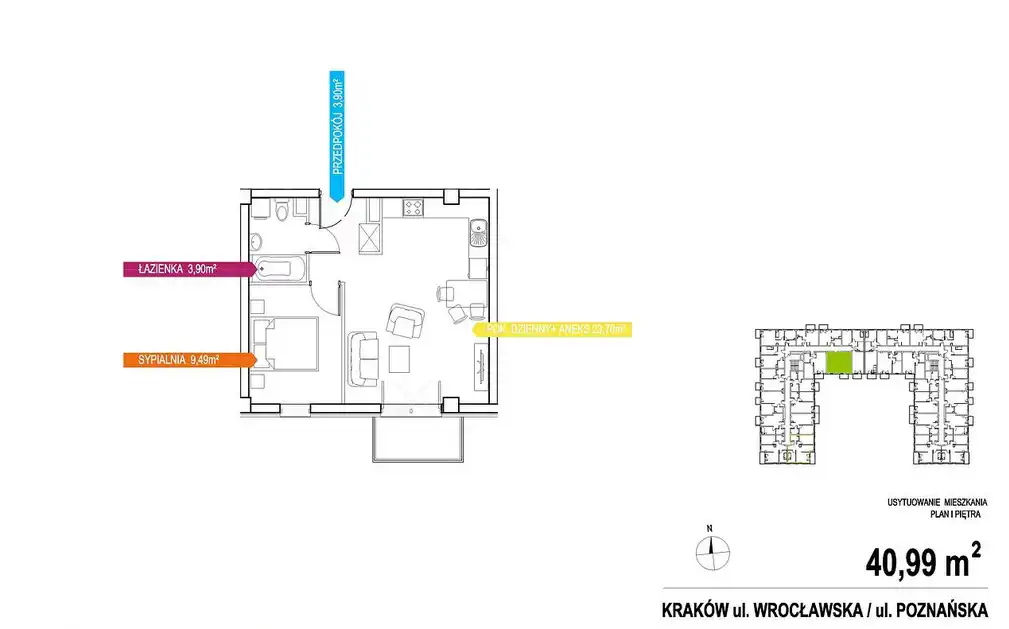 - Charakterystyka mieszkania 40.99 m2, 2 pokoje