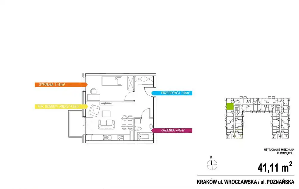 - Charakterystyka mieszkania 41.11 m2, 2 pokoje