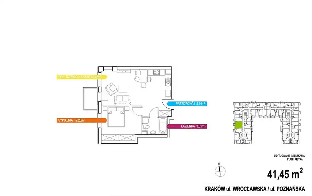 - Charakterystyka mieszkania 41.49 m2, 2 pokoje