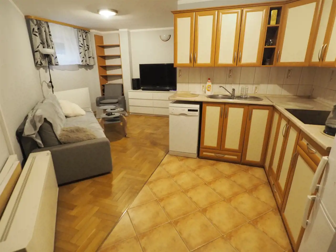 Rozkład nieruchomości to pokój z aneksem kuchennym oraz łazienka. Lokal usytuowany jest w suterenie 4 piętrowego bloku, który powstał w roku 2008.