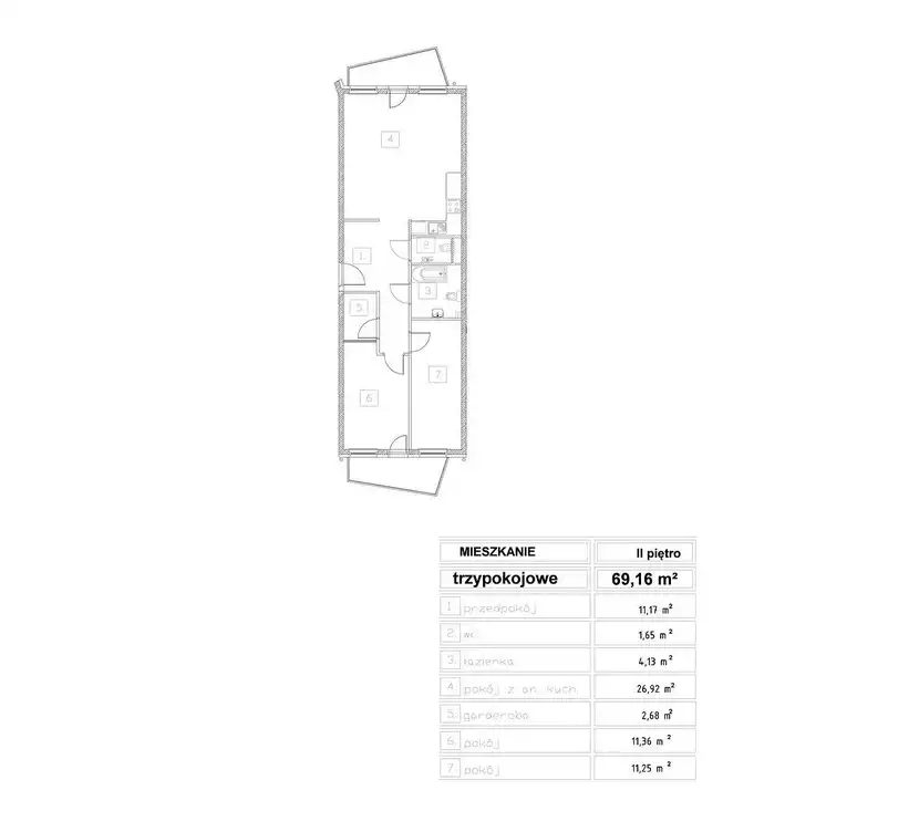 - Charakterystyka mieszkania 69.16 m2, 3 pokoje