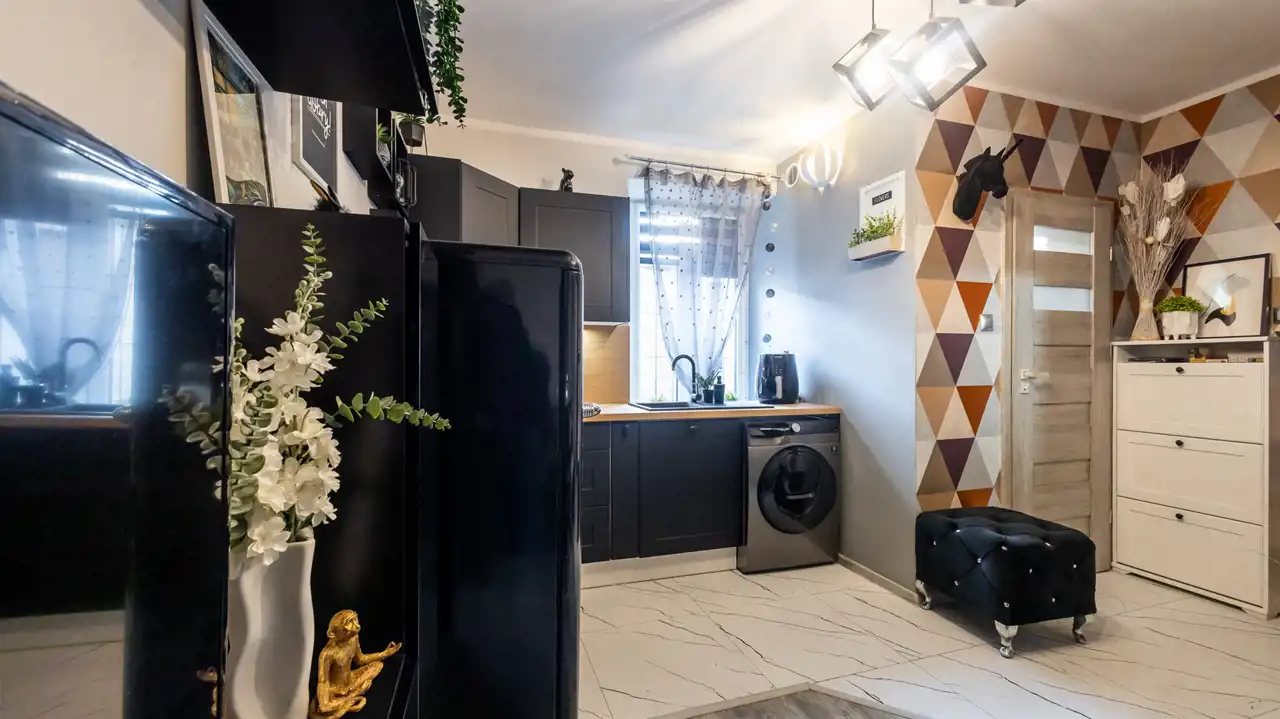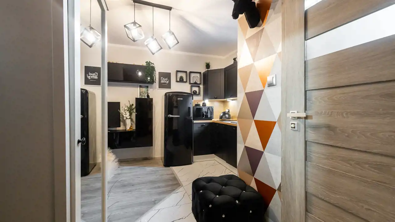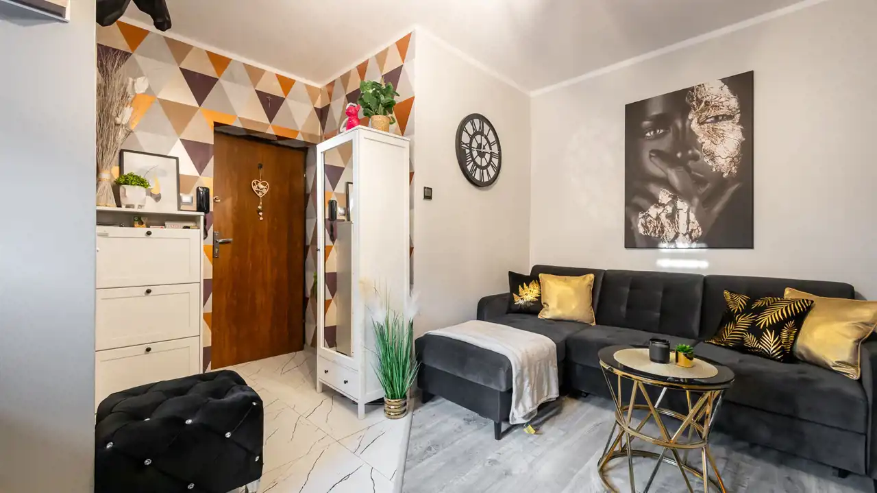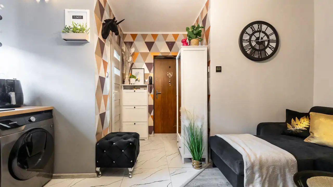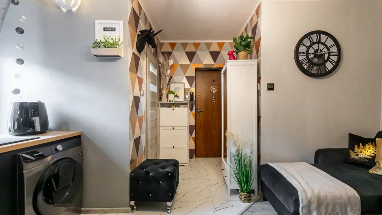 Mieszkanie przeszło generalny remont i zostało gustownie wyposażone. Sprzedawane jest wraz z zabudową stałą. Na podłogach pokoju znajdują się panele, natomiast w przedpokoju oraz łazience - płytki gresowe.