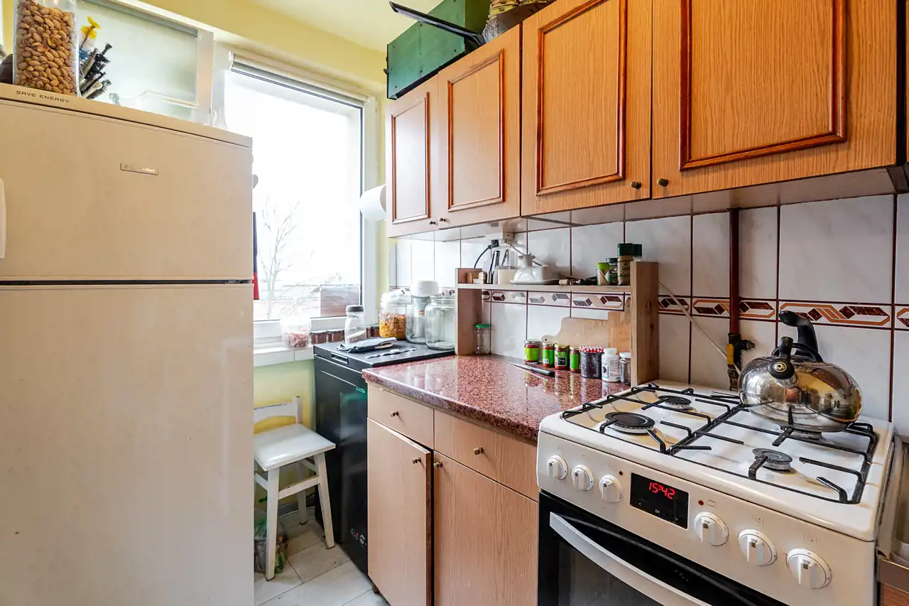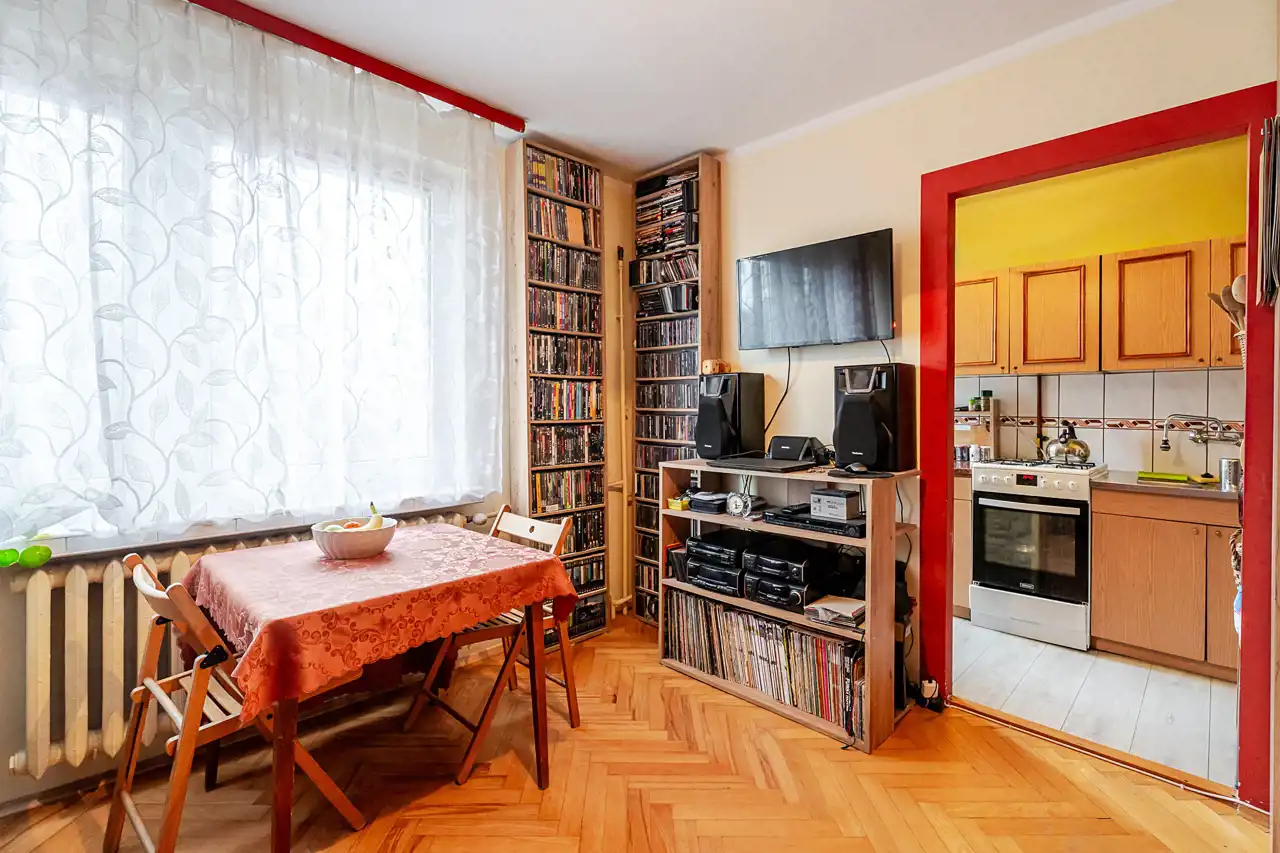 Mieszkanie jest do częściowego remontu – kuchnia i łazienka utrzymane są w starszym stylu, w przedpokoju znajduje się boazeria. W pokoju i przedpokoju położony jest parkiet, a instalacja elektryczna została wymieniona na miedzianą.