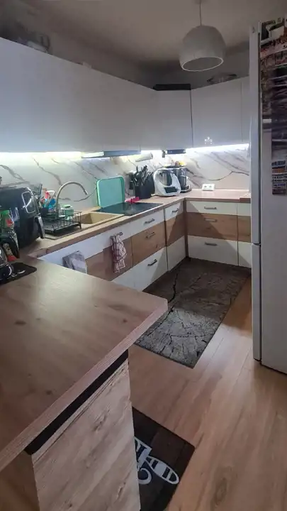 - pokoju dziennego (przestronnego salonu) połączonego z kuchnią (kuchnia umeblowana i wyposażona w podstawowe urządzenia AGD - lodówka, zmywarka, kuchenka, piekarnik, okap - urządzenia nowe, na gwarancjji). Salon z wydzieloną strefą jadalnianą oraz wypoczynkową/relaksacyjną,