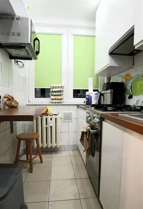 Na podłodze w pokoju panele, w pozostałych pomieszczeniach terakota. Okna PCV, wychodzą na południowy zachód. Czynsz ok. 475 zł przy 1 osobie. Dodatkowo prąd i gaz (tylko do kuchenki). Ogrzewanie i ciepła woda miejskie.
