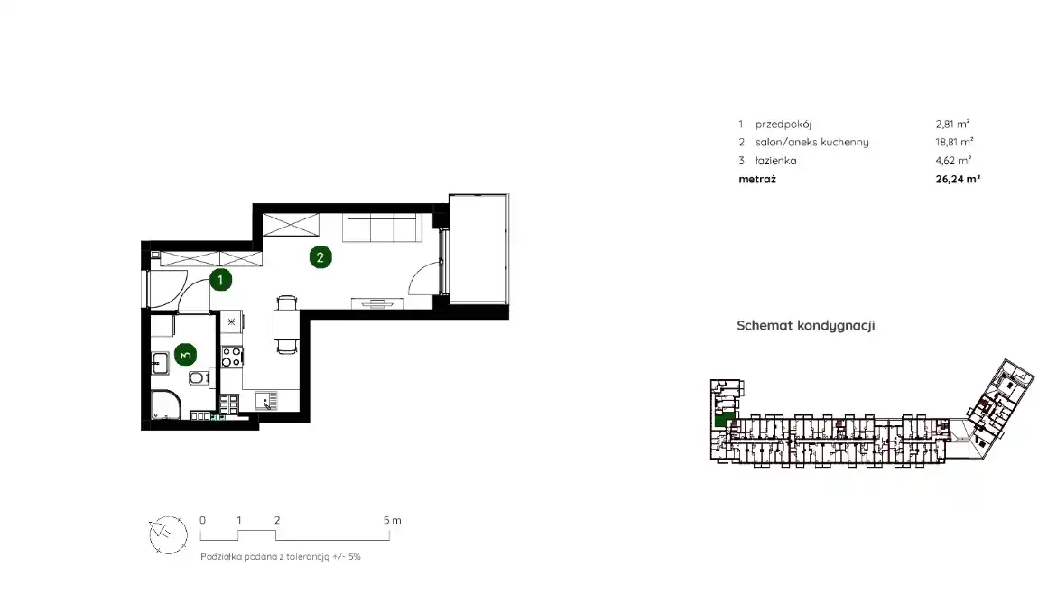 - Charakterystyka mieszkania 26.24 m2, 1 pokój