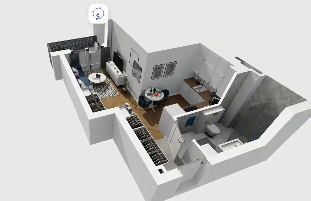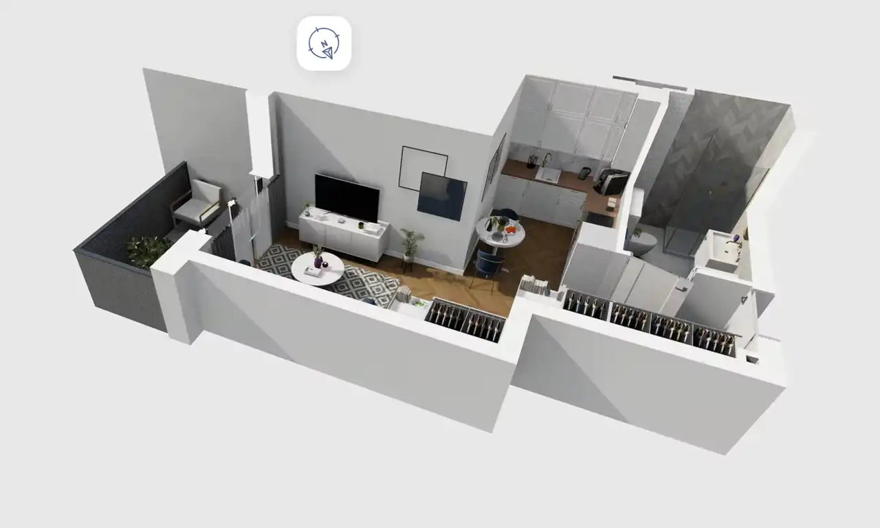 Mieszkanie składające się z kuchni, pokoju, łazienki oraz balkonu