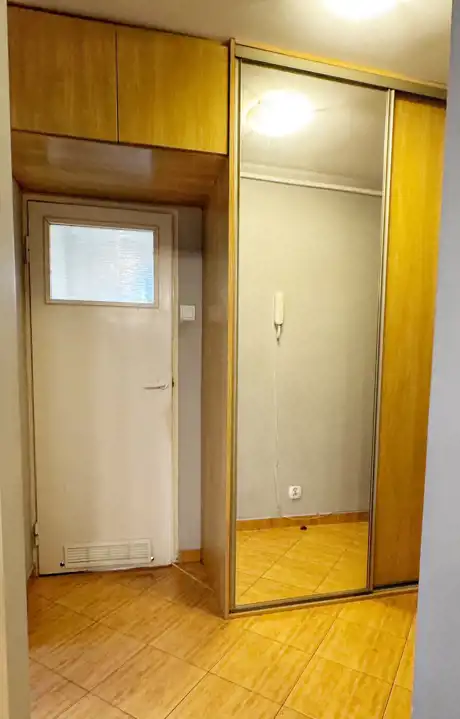 przedpokój z dużą szafą wnękową prowadzący do każdego z pomieszczeń w tym, do obszernego pokoju ( 16 mkw) z wyjściem do przeszklonej loggii, jasnej kuchni i łazienki z kabiną prysznicową. Budynek z ciepłą wodą użytkową, w łazience nie ma gazu. Kablówka i internet. Mieszkanie na planie kwadratu, bardzo jasne, raczej do remontu. Do mieszkania przynależy spora 3,5 metrowa piwnica.
