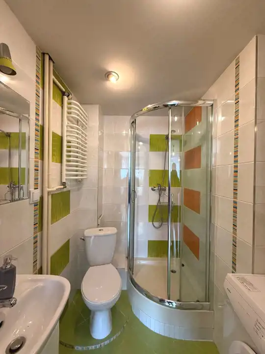 - w łazience: pralka, kabina prysznicowa,