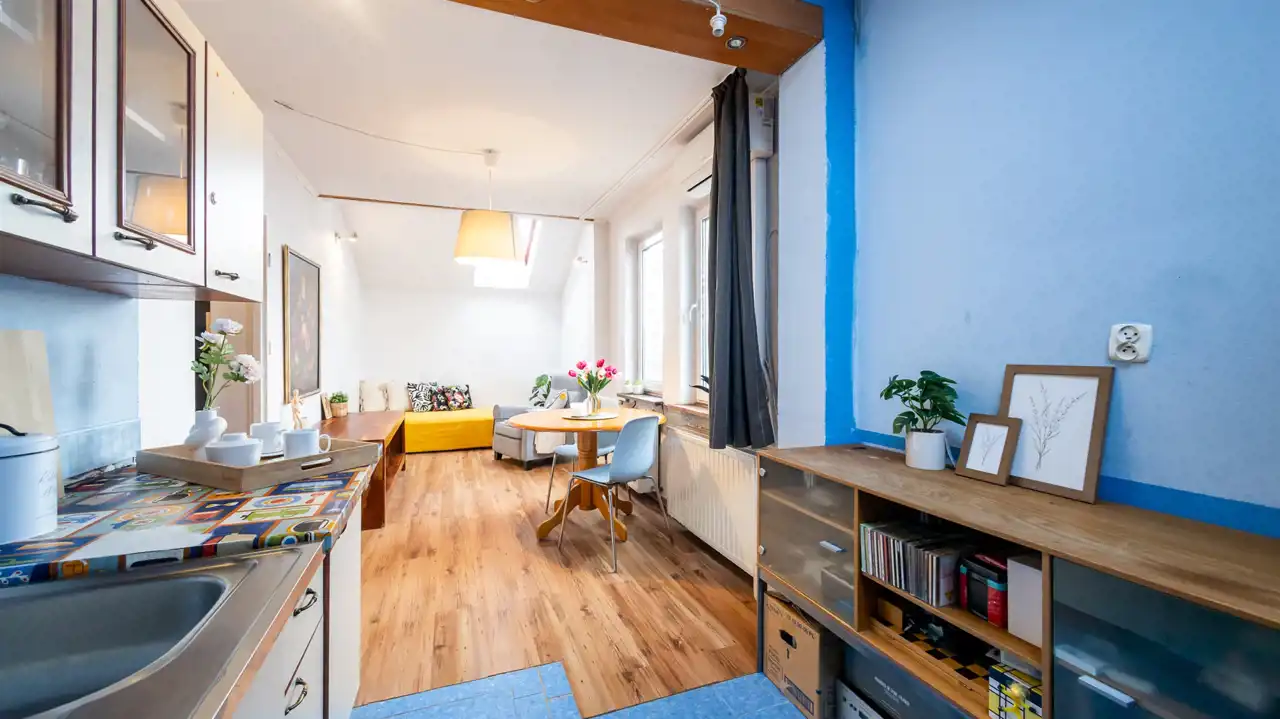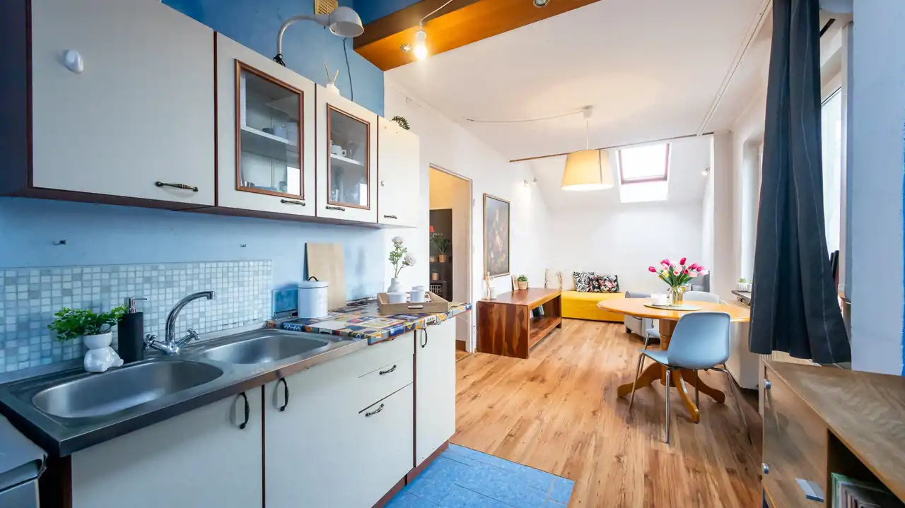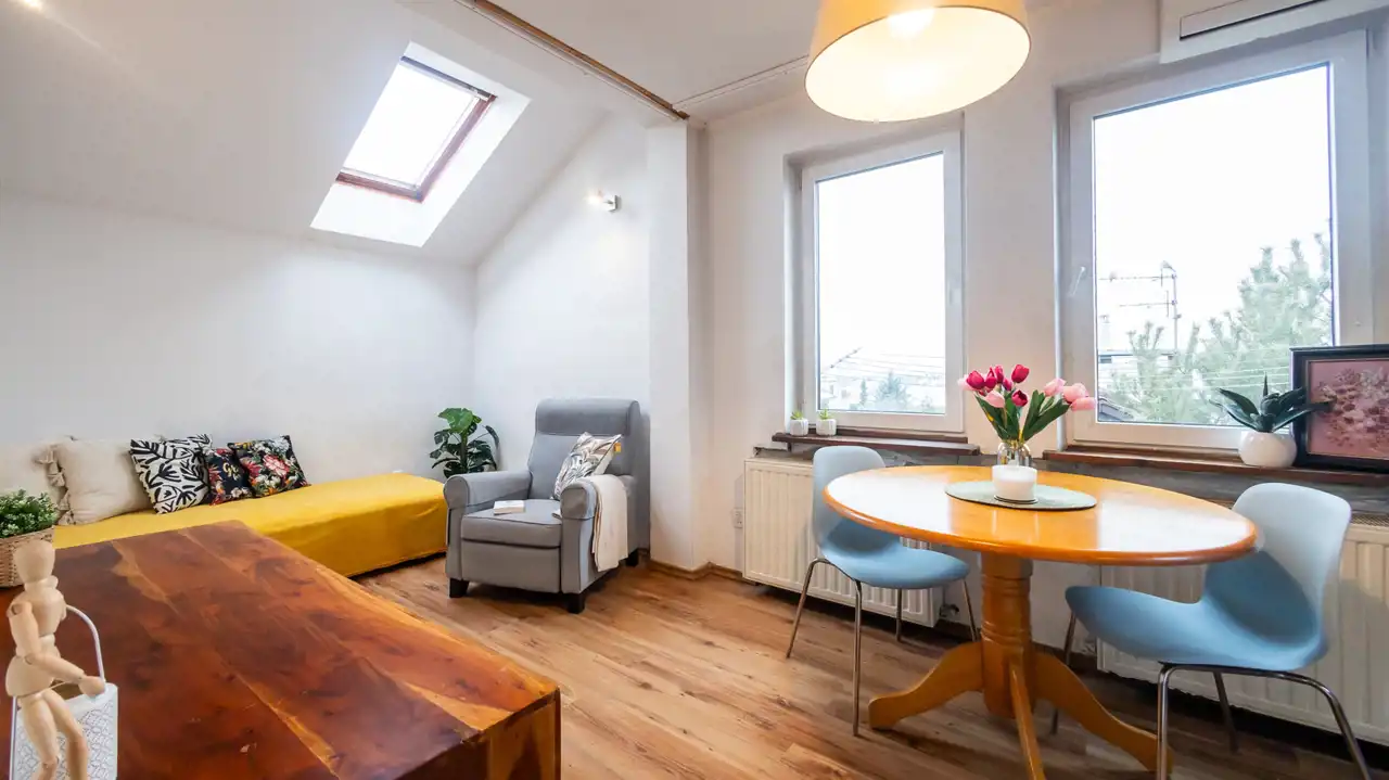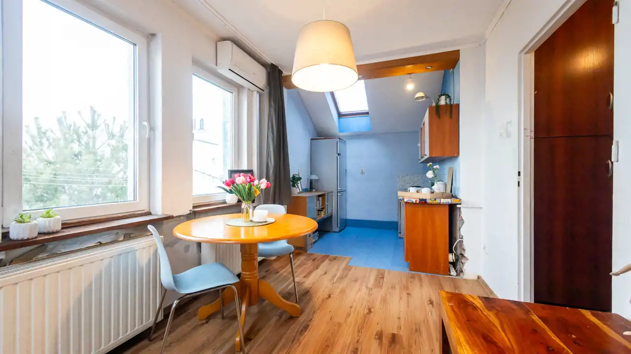 Mieszkanie idealne będzie dla singla, pary a także artysty plastyka, który na pewno doceni walory widokowe.