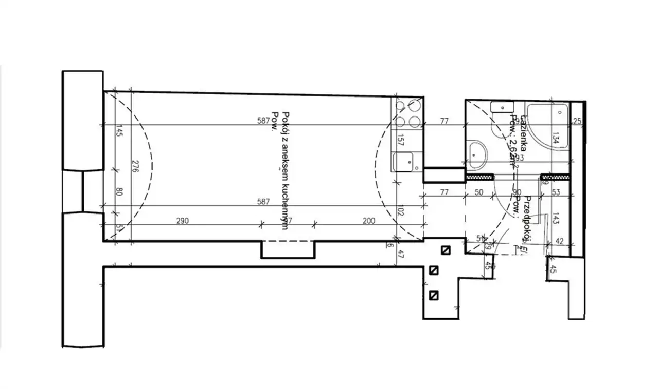 - pokój z aneksem - 15,50 m2