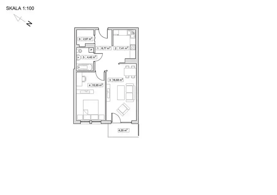 - Charakterystyka mieszkania 58.01 m2, 2 pokoje