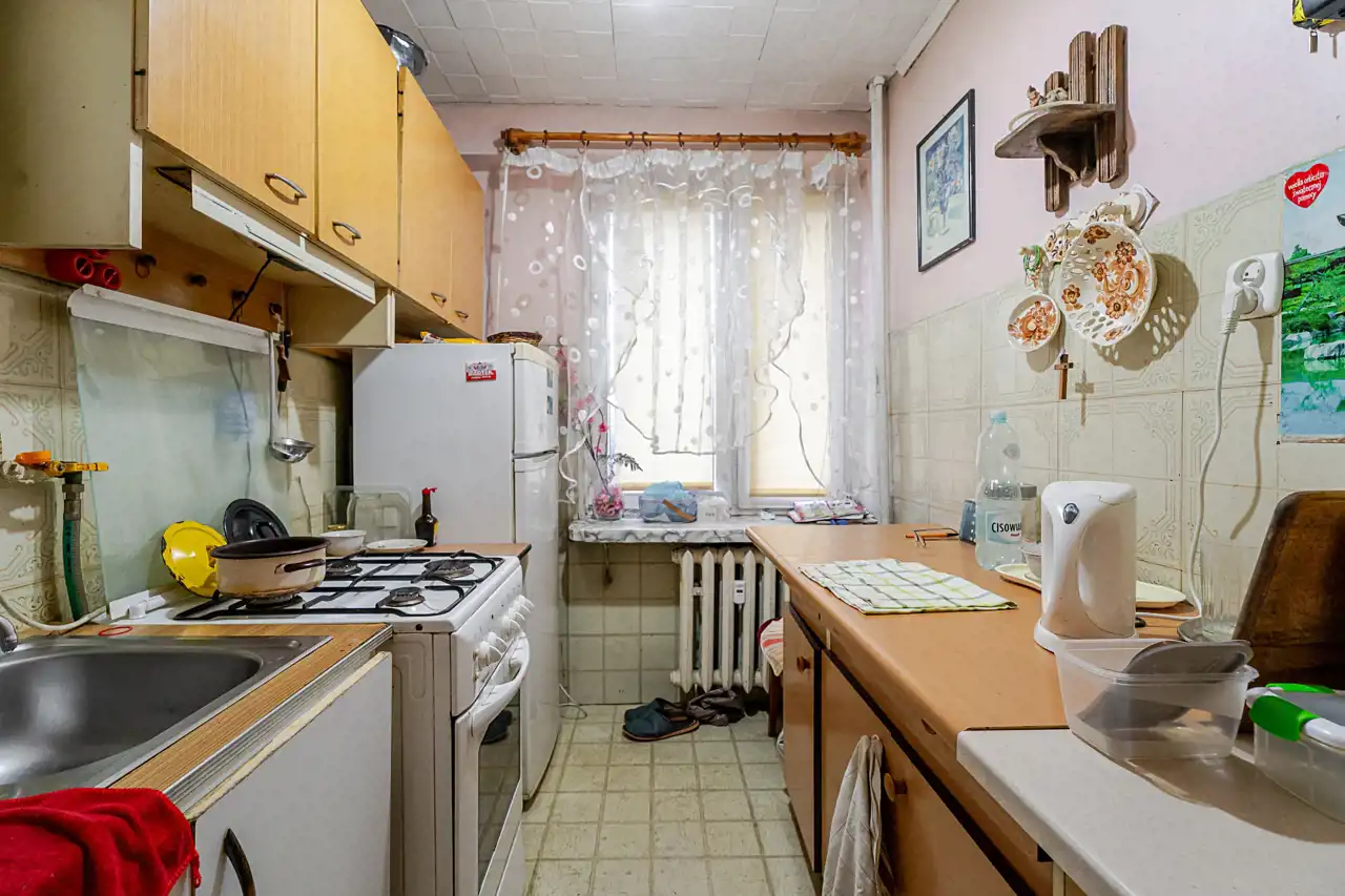 - Media Ogrzewanie: C.O. miejskie; Woda: ciepła - piecyk; Gaz: tak - miejski
