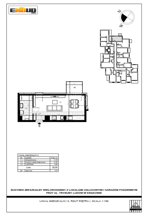 - Charakterystyka mieszkania 28.09 m2, 1 pokój