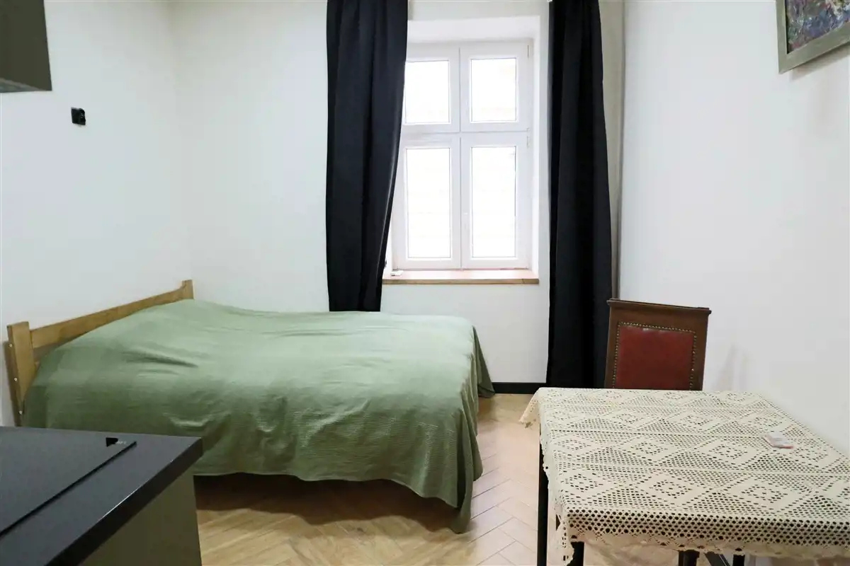 Na podłogach gres. Okna PCV, wychodzą na południowy wschód. Czynsz wynosi ok. 420 zł. Dodatkowo prąd. Ogrzewanie podłogowe elektryczne (w kamienicy jest MPEC), ciepła woda miejska.
