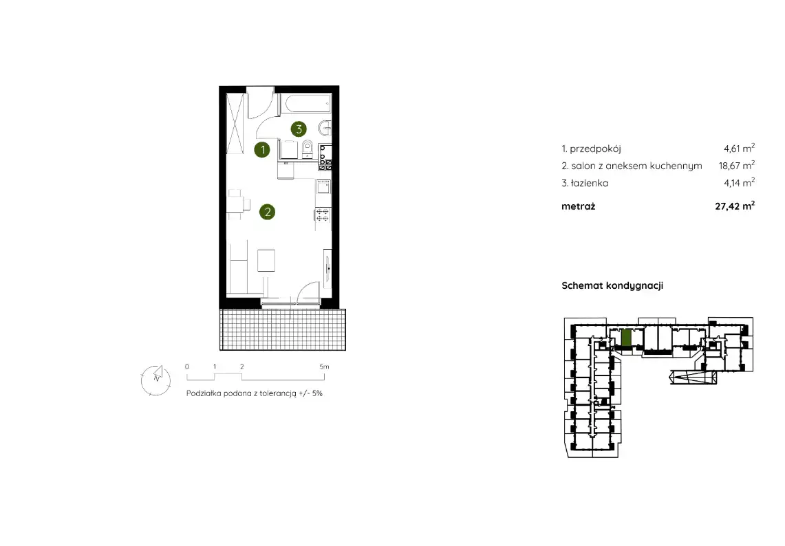 - Charakterystyka mieszkania 27.42 m2, 1 pokój