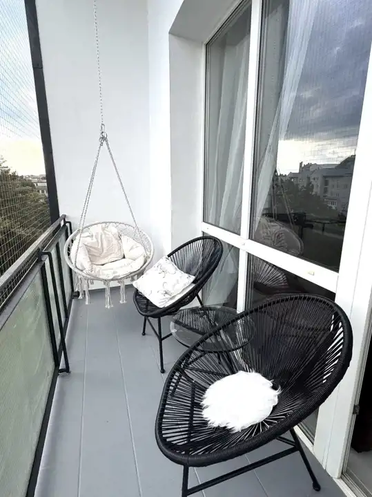 - Przestronny, jasny salon z dużymi oknami i balkonem, zapewniający dużo naturalnego światła oraz piękne widoki na Grzegórzki Park