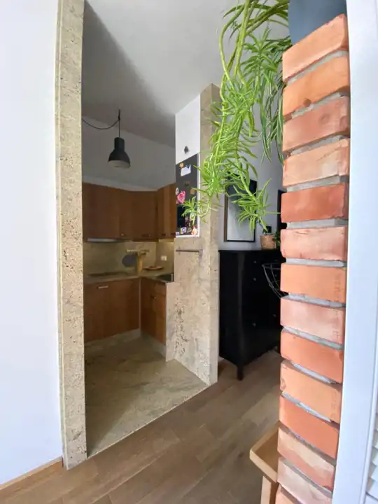 Układ mieszkania to: przedpokój, salon z oddzieloną kuchnią, sypialnia, łazienka z kabiną prysznicową i toaletą.
