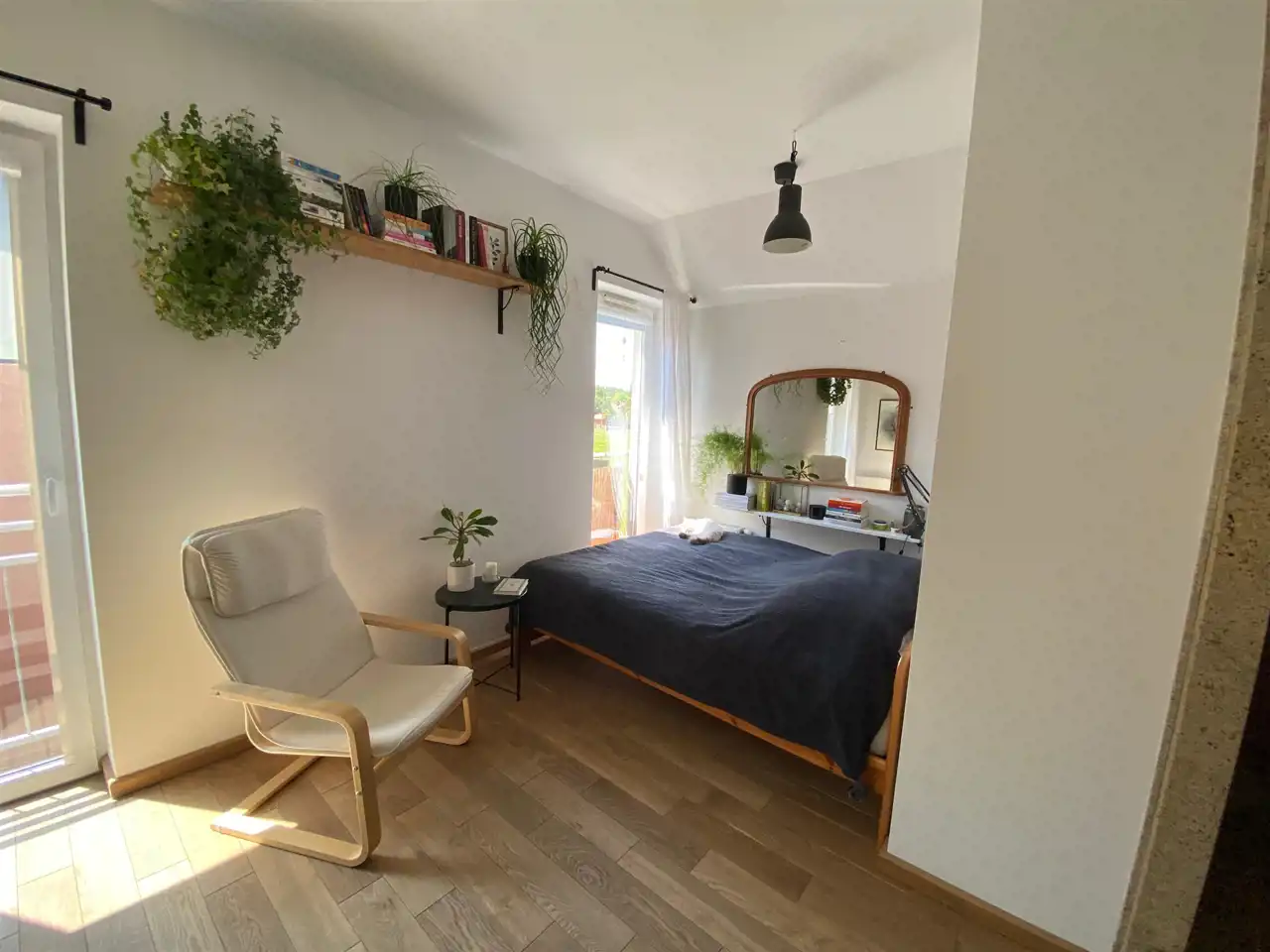 Do mieszkania przynależą dwa balkony francuskie.