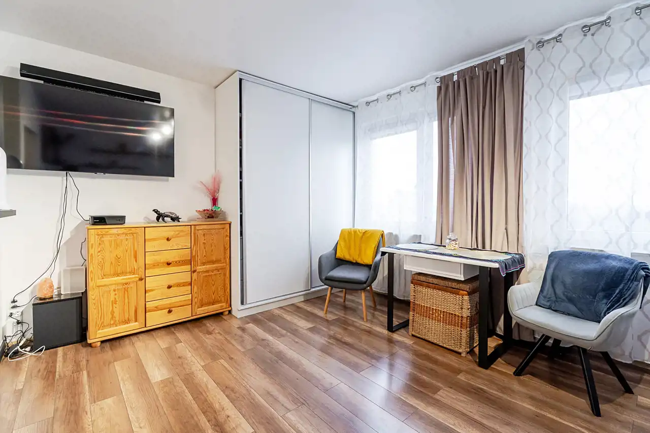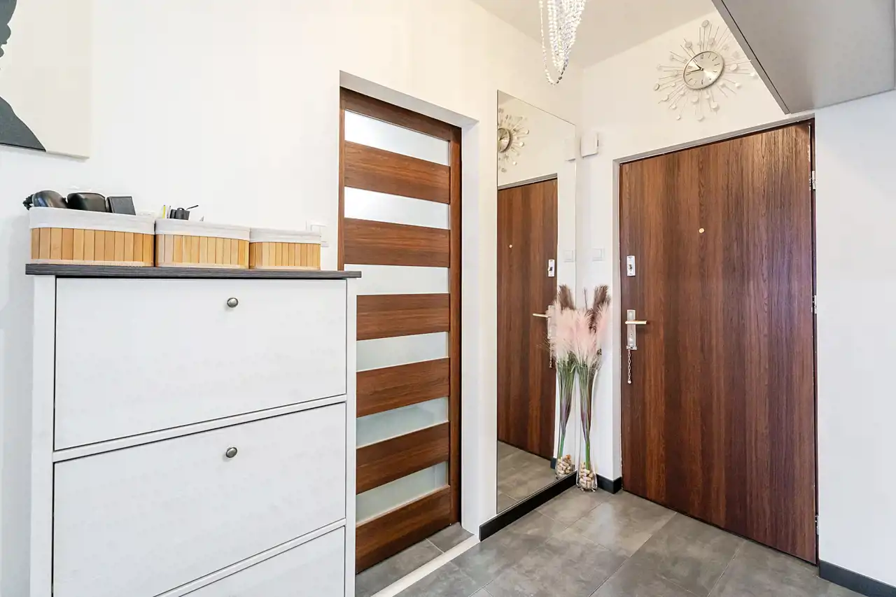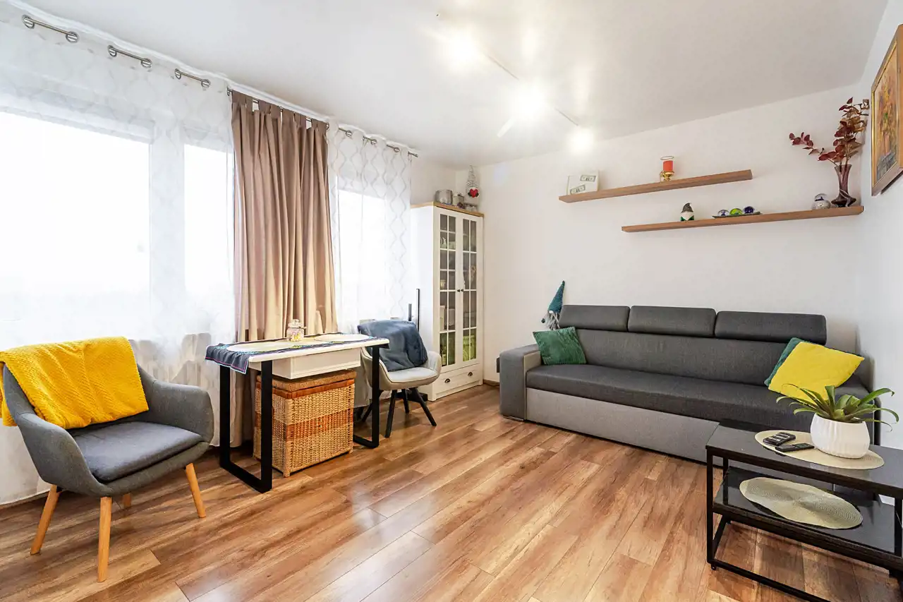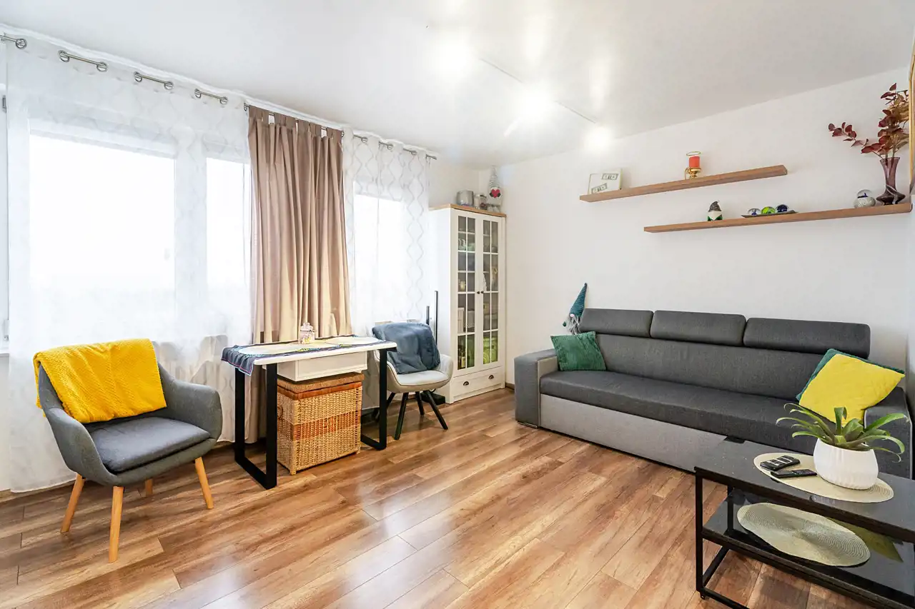 Mieszkanie jest zadbane i nie wymaga nakładów finansowych . Podczas remontu wymienione zostały wszystkie instalacje, drzwi. Na podłodze w pokoju znajdują się panele, a w przedpokoju, kuchni i łazience - gres. Okna nowe, plastikowe, skierowane na wschód.