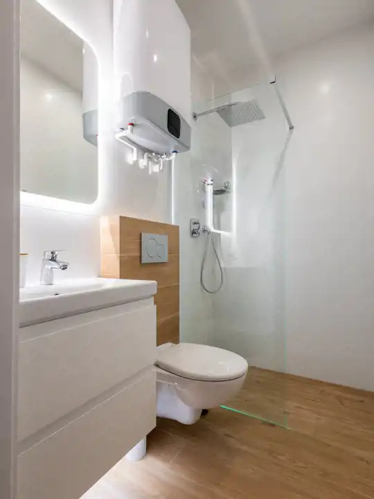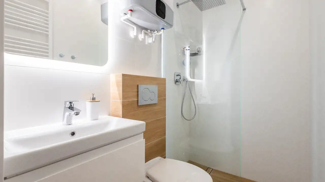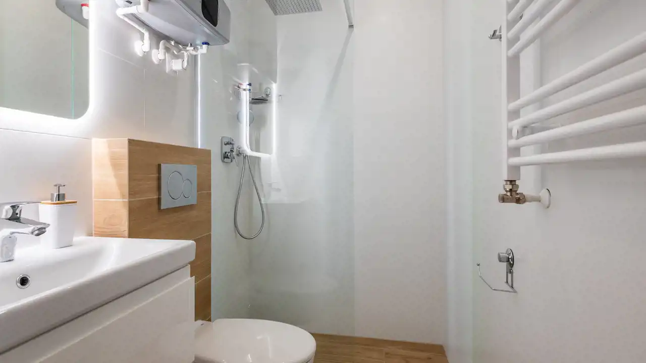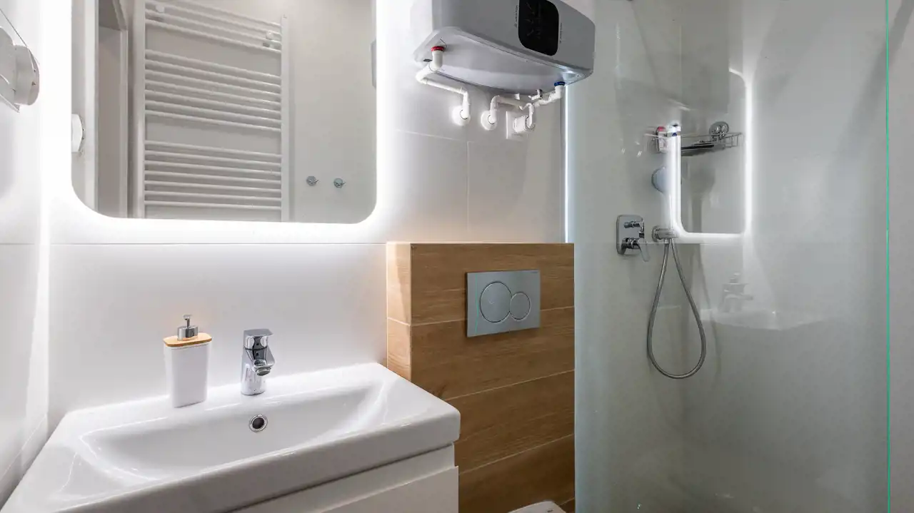 Ogrzewanie miejskie i ciepła woda z piecyka elektrycznego.