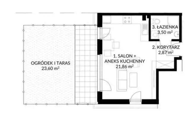 Nowoczesne mieszkanie w stanie deweloperskim – możliwość aranżacji na 2 pokoje | ogródek