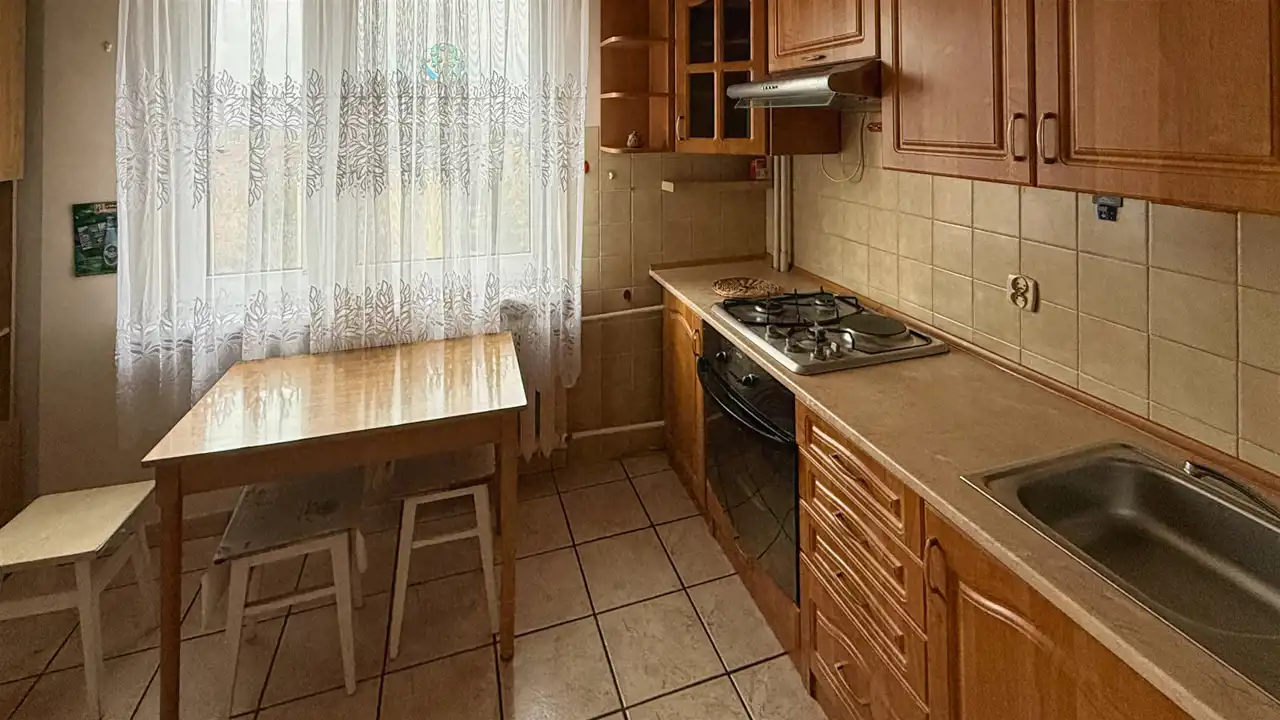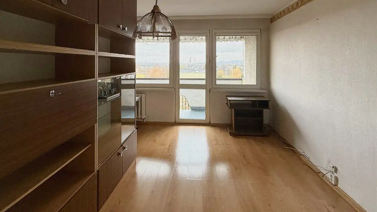 Mieszkanie położone jest na 6 piętrze w 11- piętrowym bloku z 1985 roku. Na powierzchnię (36 m2) składa się: pokój dzienny (20,4m2) ; osobna jasna kuchnia (9m2); łazienka z WC; przedpokój. Do mieszkania przynależy duża loggia oraz piwnica.