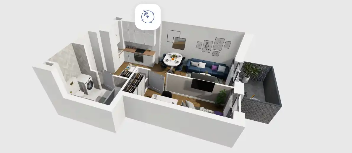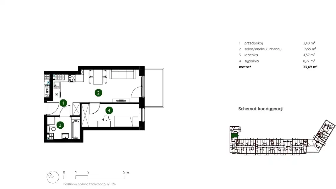 - Charakterystyka mieszkania 33.69 m2, 2 pokoje